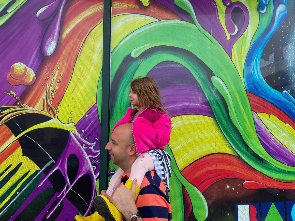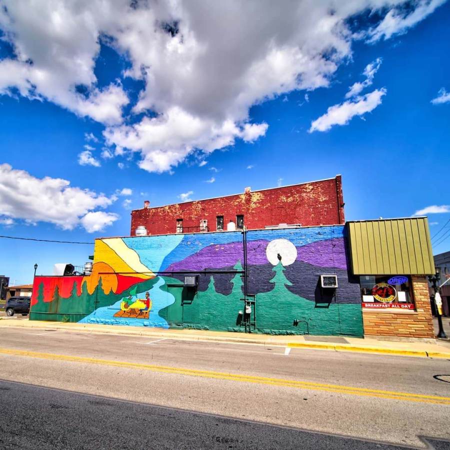 Travel to the rear parking lot wall of Little Forks Outfitters to witness the first-ever Art Seen Festival mural, a mural created “live” during a city-wide immersive arts weekend. Find other years' community-crafted Art Seen Festival murals, too, at Ace Hardware and Twice Is Nice Resale Boutique.