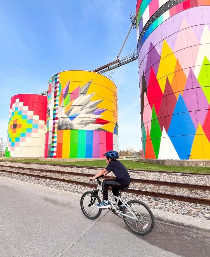Don't miss the chance to be mesmerized by one of America's greatest public works of art — the colorful kaleidoscope of the Shine Bright Saginaw Mural! Revered as the second-largest mural in the United States, once-blighted silos now showcase the vibrant work of world-renowned muralist Okuda San Miguel, sharing a message of freedom & diversity.