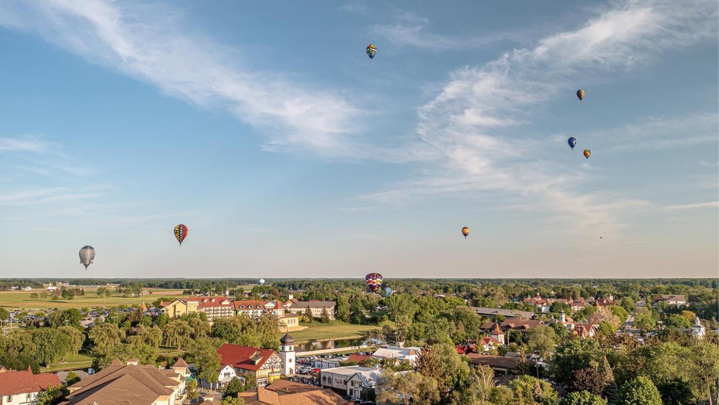Balloons Over Bavarian Inn (May 23 - 26) Witness surreal sunrise flights as hot air balloons take to the sky, and attend nightly Balloon Glows to see them hang like magical glowing lanterns!