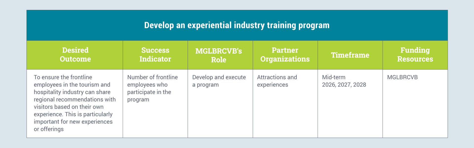 At the GLBRCVB, we understand the importance of delivering exceptional experiences that leave a lasting impact on our visitors and residents. We believe that a well-designed Experience Development Plan is critical to achieving this goal, as it allows us to strategically plan and execute initiatives that focus on customer satisfaction, engagement, and loyalty.
