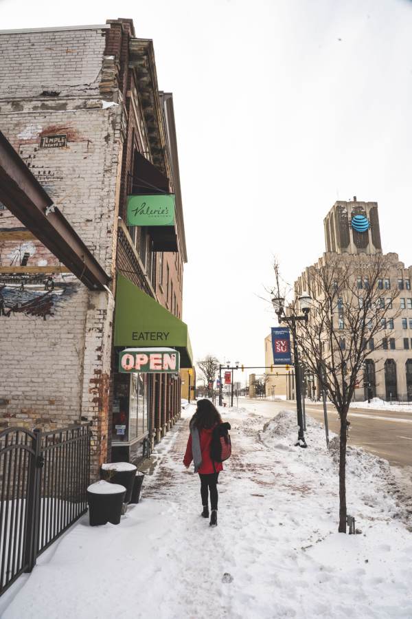 Lunch: Nevermind the weather — it’s always comfortable inside Fralia's, where fresh deli sandwiches & homemade soups are always on the menu. Enjoy made-to-order Asian cuisine inside Pasong's Cafe, known for their irresistible Pho and the best spring rolls in town, or let Mexican dishes and a menu of sandwiches keep your mind off Mother Nature at Valerie’s Downtown. Break from the elements inside the cozy, brick-lined shop of Old World Pizzeria — and absolutely order up the cheese slice with Stracciatella & basil.