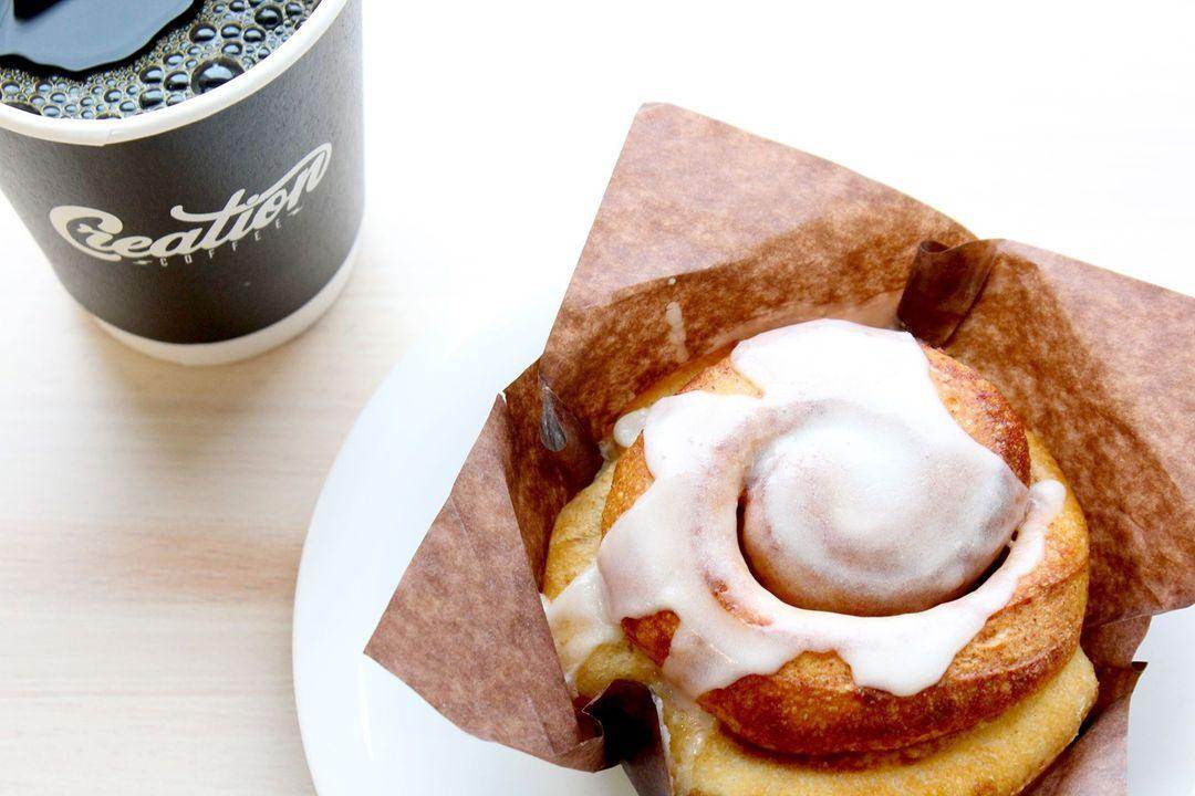 Breakfast: Get your morning boost from a cup of specialty grade, sustainably grown, and locally roasted Creation Coffee. Pair your java with a cinnamon roll (served warm), frittatas, or a house-baked bagel.