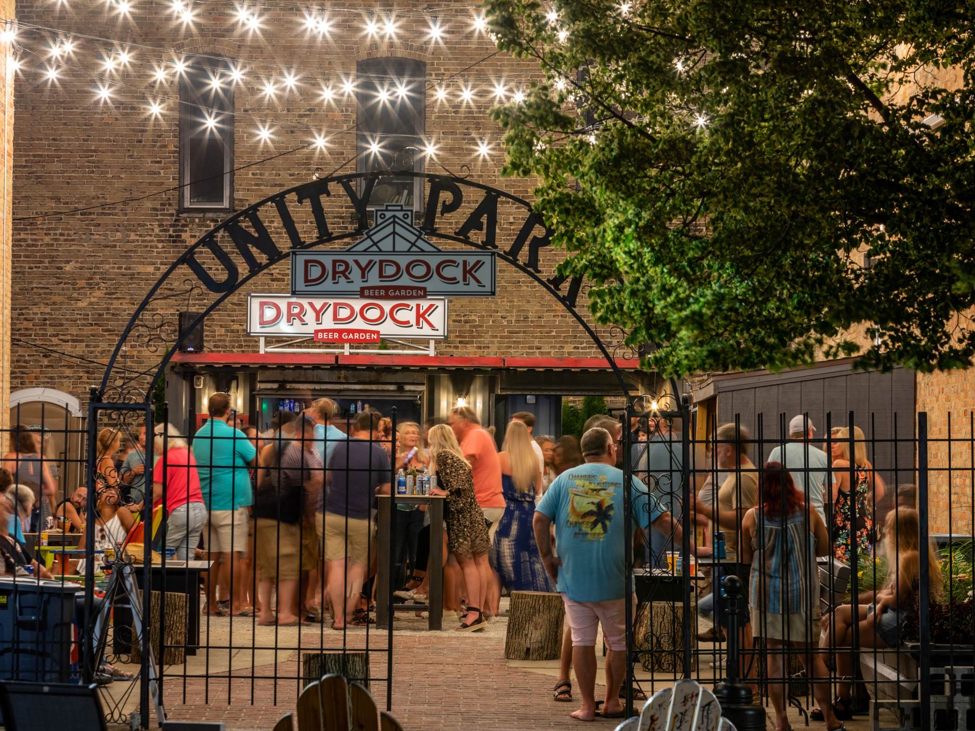 Read More +Support local charities while sippin' away under the string lights at Drydock Beer Garden. A seasonal outdoor beer garden in cozy Unity Park, grab a brew or glass of wine with friends — you’re welcomed to bring in eats from nearby restaurants & food trucks — and enjoy outdoor relaxation in the heart of Downtown Bay City’s dining district.