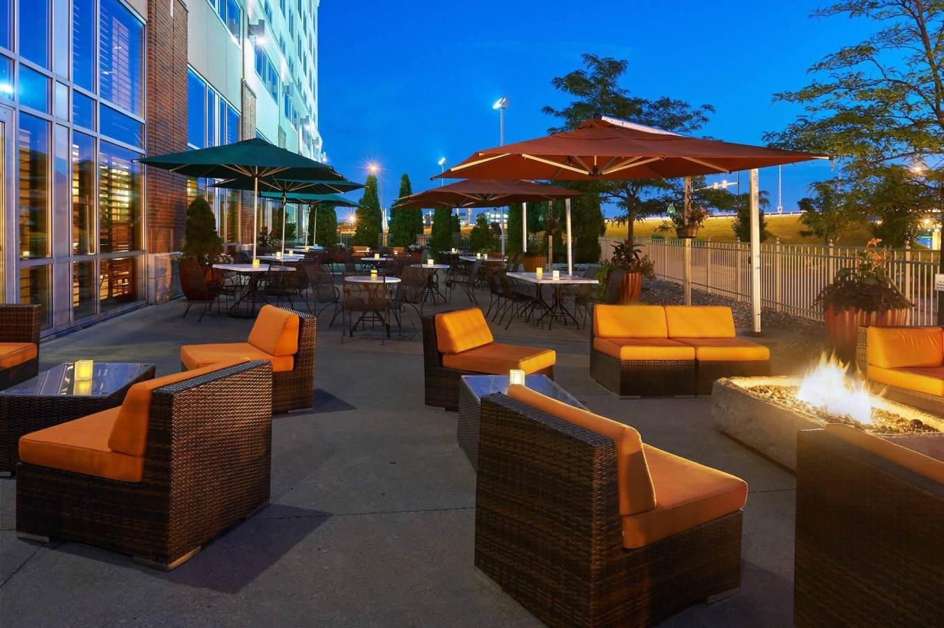 Featuring seasonal outdoor seating, enjoy a shoreside meal at Riverfront Grille & Lounge at the Doubletree by Hilton Hotel Bay City - Riverfront. Dine at an umbrellaed table, complete with the tranquility of the Saginaw River, and sink into cozy lounge seating by the fire bar with a cocktail!
