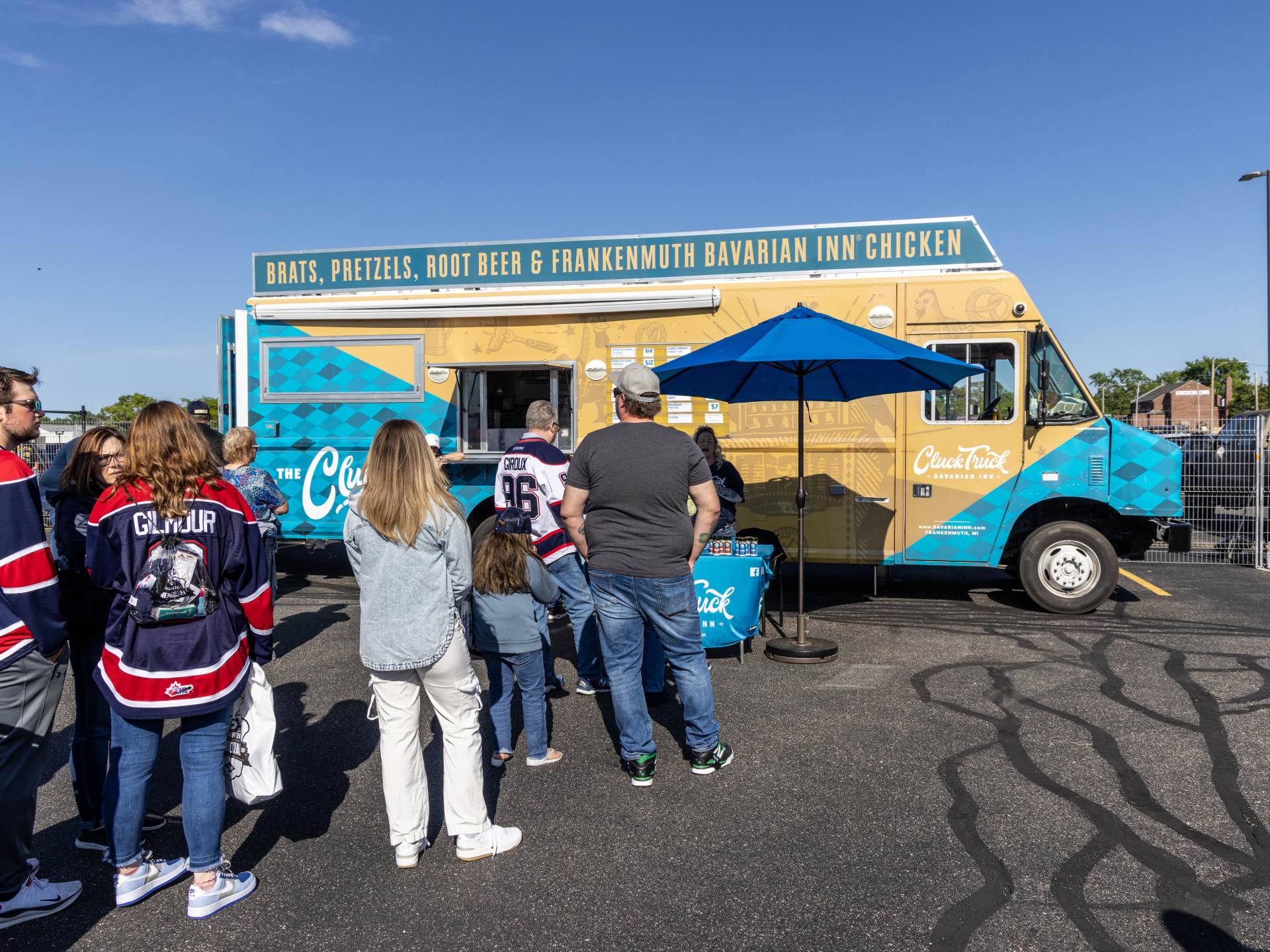 Bavarian Inn Cluck Truck: World-famous Bavarian Inn Restaurant menu on the road! Frankenmuth® Chicken, house-made bratwurst, Bavarian pretzels, buttered noodles, potato cheese puffs.
