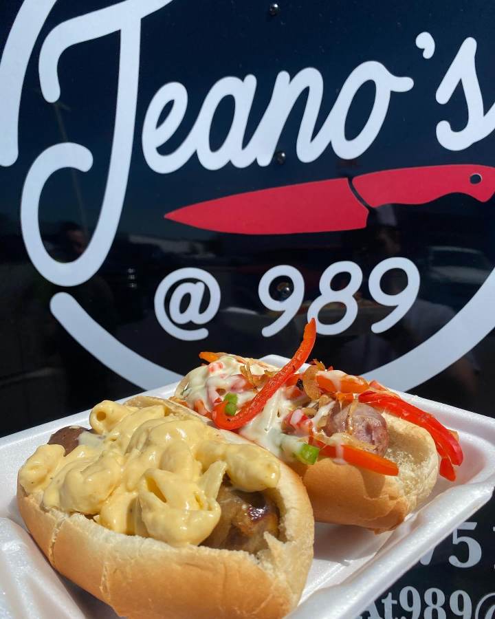 Jeano’s @ 989: Chef-crafted street foods! Specialty double smash burgers on Brioche buns, Braised Brisket Birria Tacos, Jeano's Famous Queso, Street Corn Bowl & Chips.