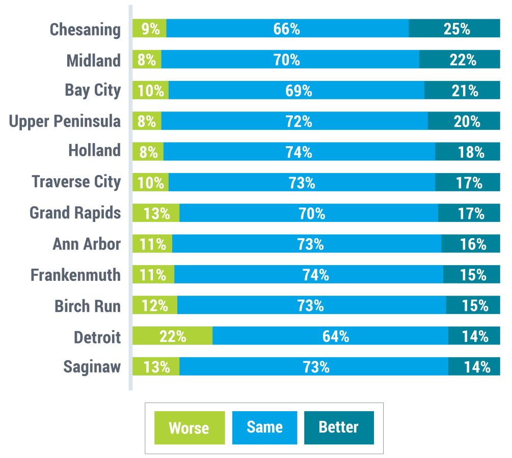 *Q: Based on what you know about each Michigan destination, how do you think today's visitor experience compares prior to the COVID-19 pandemic and the 100-year flood?