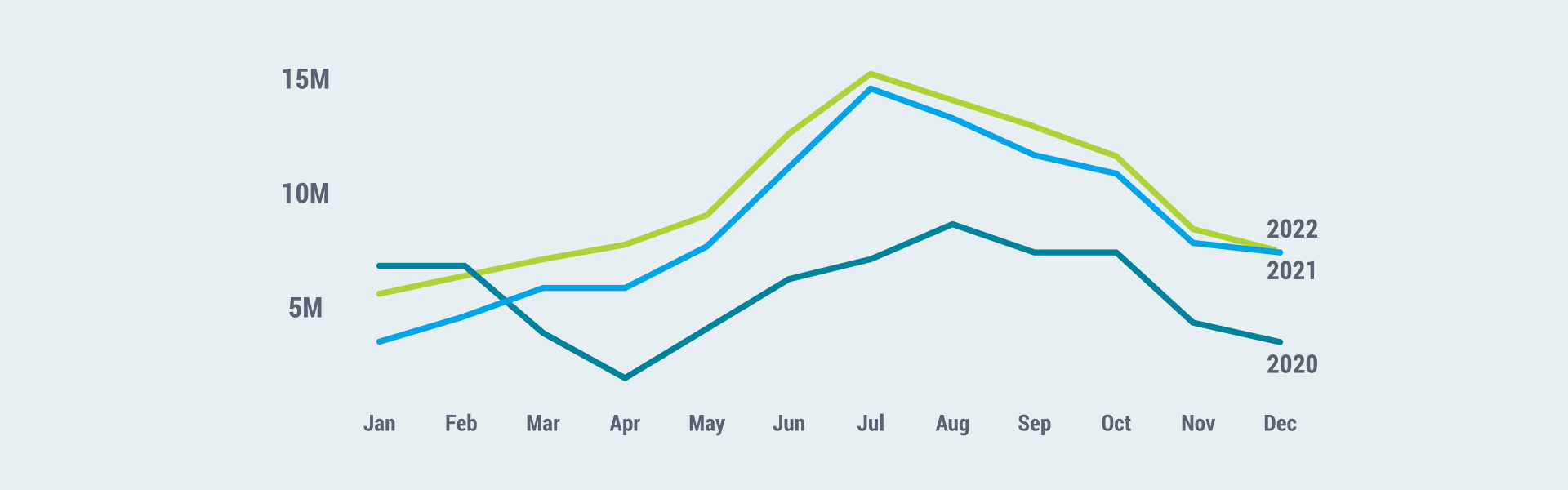 To develop our forecast for the future of economic recovery in MGLBR, we analyzed several different trends, including consumer travel sentiment and travel priorities. We reviewed hotel room revenue performance, air travel trends, and international travel forecasting. Finally, we included an analysis of job openings in the leisure and hospitality sector to ensure that we can make informed predictions.