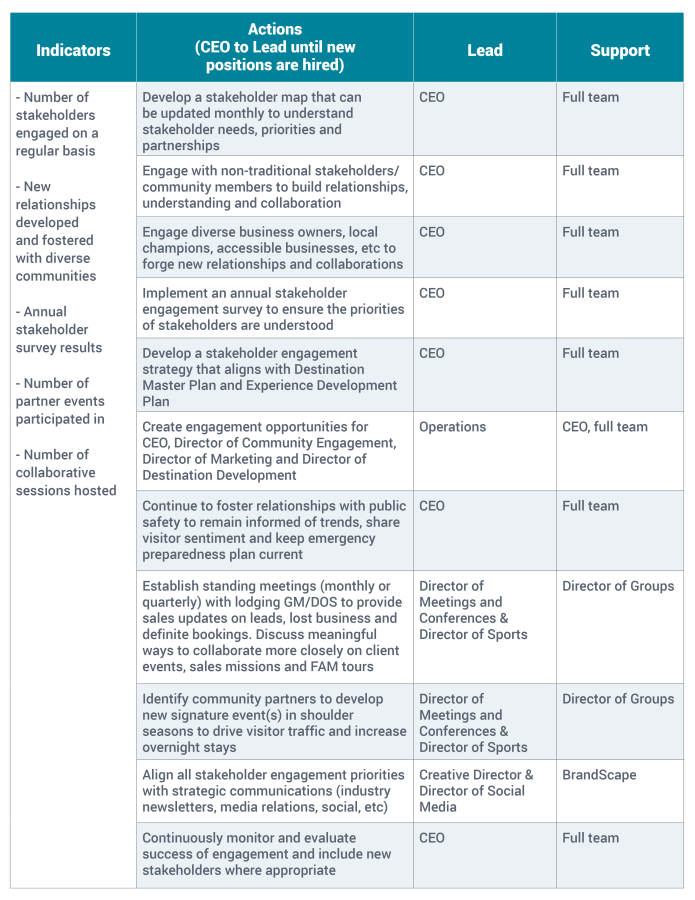 We must adopt a comprehensive and inclusive stakeholder engagement focus. To be successful, we will work to gain the trust and support of our community and the residents of our area. Developing relationships with stakeholders, diverse communities, and partners will allow us to understand their needs and priorities. This focused, collaborative engagement supports recovery and the long-term health of the destination.