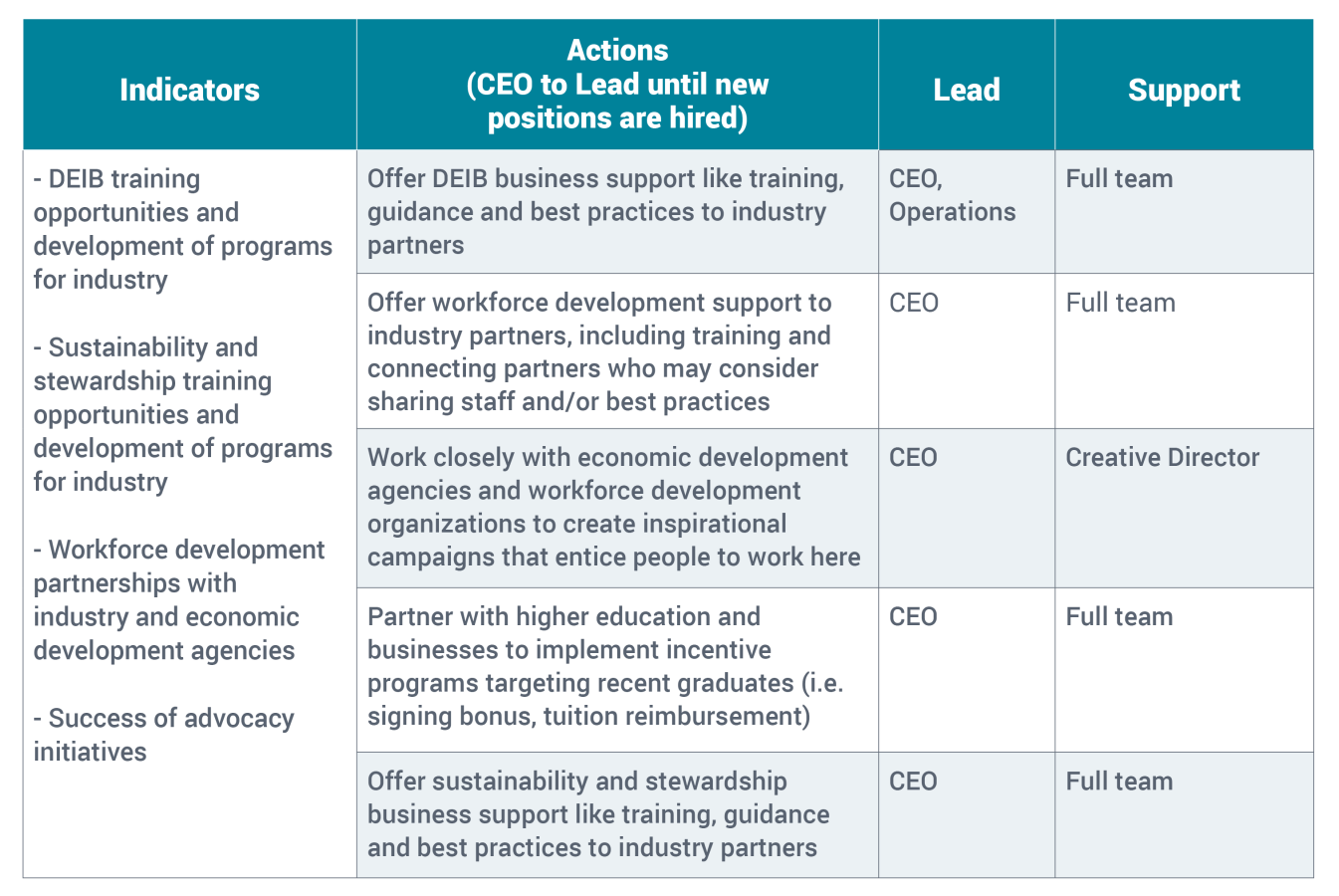As partners in our community, we will support industry capacity building to extend our commitment to DEIB. We plan to offer training and development opportunities to industry partners and stakeholders that give guidance and help establish best practices throughout the region.