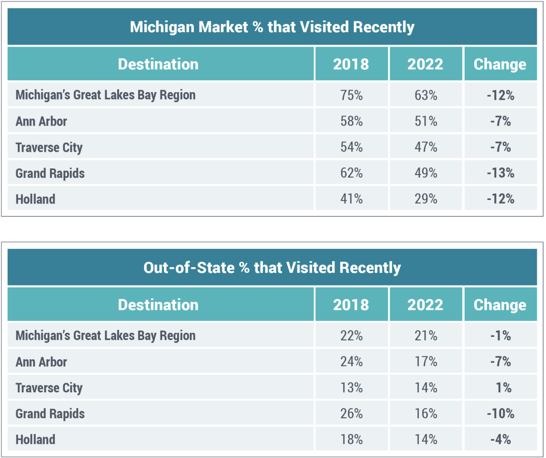 Recent Visitors: Visited a destination within 3 years at the time the respondent were surveyed.