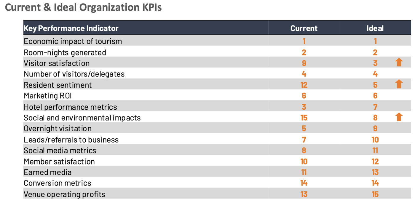 A key part of any recovery plan is establishing objective, measurable metrics to monitor and evaluate the recovery effort. The most commonly used KPIs today involve economic metrics (e.g. visitors, GDP contribution, employment, and tax impacts) and hotel performance metrics (e.g. occupancy rates, RevPar, average daily rates). There is a trend toward more KPIs around visitor satisfaction and resident sentiment.