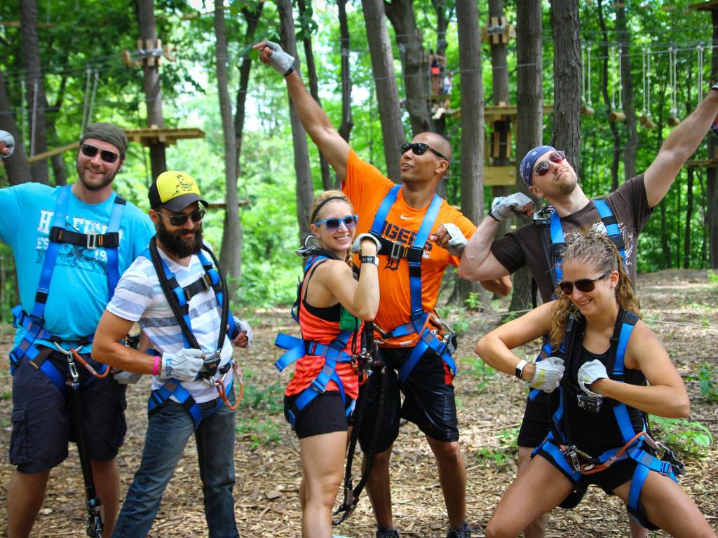 Read More +Take your fall experience to new heights, right through the colorful treetops, on ropes courses & ziplines at Frankenmuth Aerial Park.