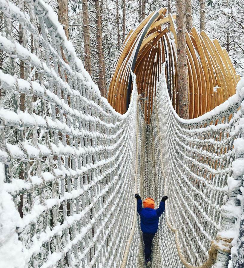 With 110 acres of snowy splendor, enjoy Dow Gardens in the winter — especially on a canopy walk through the frozen forest!