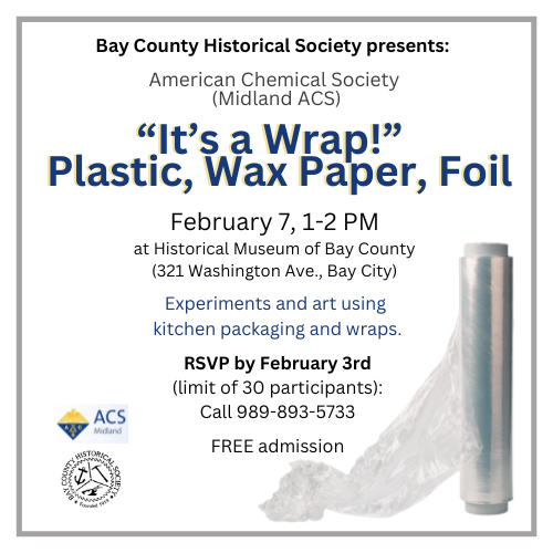 Join us for a CHEMISTRY at the museum. Visitors of all ages can take part in experiments and art using films, aluminum foil, and wax paper. Scavenger hunts (with prizes) will be available in the ACS history exhibit.