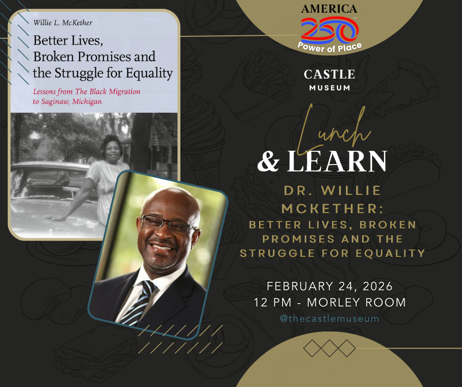 In celebration of the United States' 250th anniversary, we are hosting some specially-themed events, including this Lunch and Learn talk focused on The Power of Place. Join Dr. Willie McKether, author and historian, for his discussion of Black Migration to Saginaw.