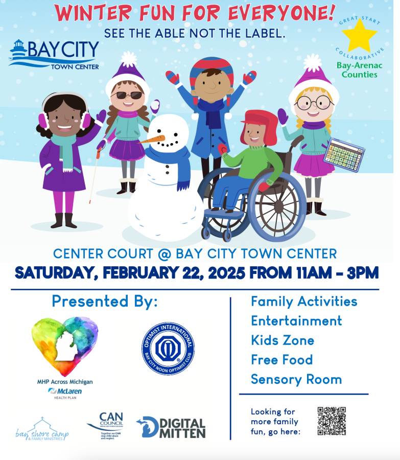Enjoy a family-friendly winter event at Center Court in Bay City Town Center. We'll have family activities, sensory room, lunch and story time, face-painting, crafts and a 'kids zone' equipped with a bounce house, laser tag, obstacle course and complimentary food.