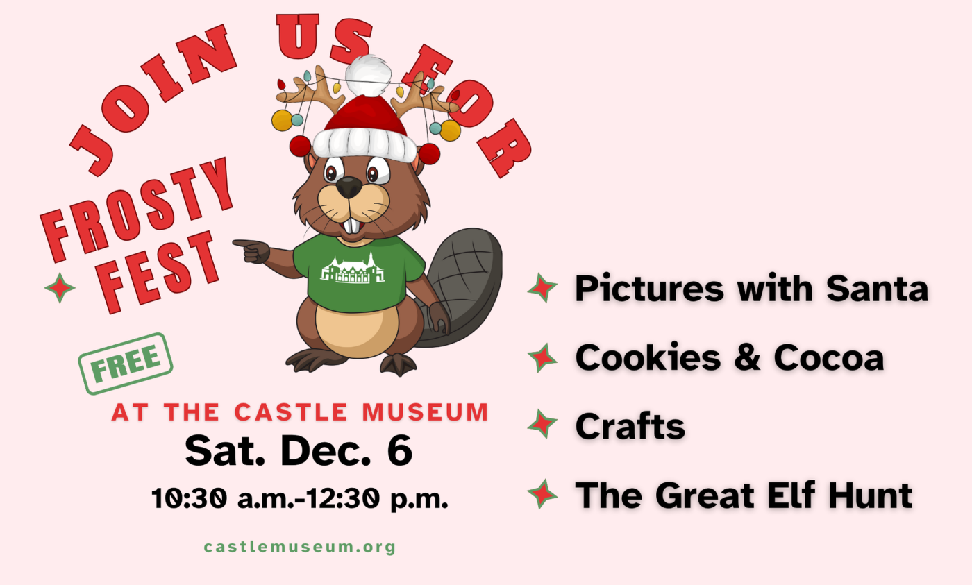 Get out of the cold and into our warm museum as we celebrate the holidays with Santa, cocoa, cookies and crafts! Snap a selfie with Santa in front of our beautiful staircase amidst a holiday-decorated Castle and browse the exhibits. FREE. Just drop in.