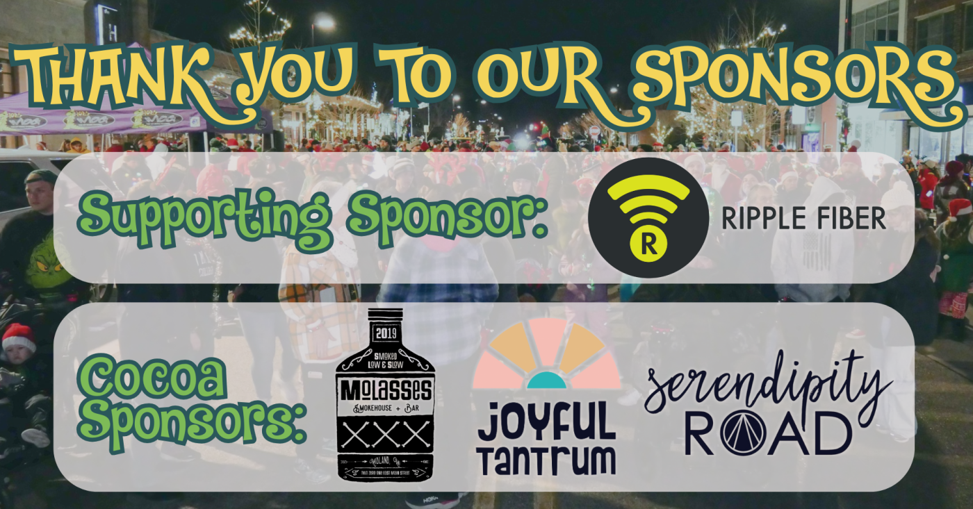 The 2025 Jingle Bell Fun Run is made possible thanks to Ripple Fiber, this year’s Supporting Sponsor. Fiber’s team will be on site near the start line sharing holiday cheer and festive giveaways while supplies last, complementing the cocoa sponsors’ contributions.
