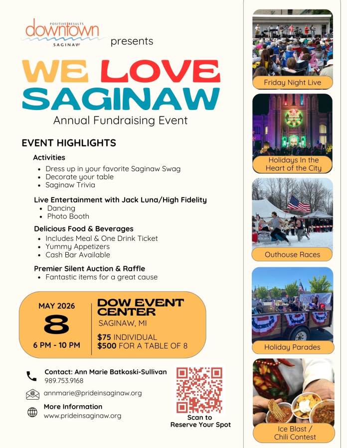 Join us for Positive Results Downtown Saginaw's annual fundraiser! Our theme this year is We Love Saginaw!