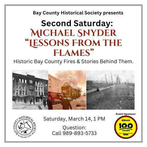 Join us for the 2025-2026 Second Saturday Series with Michael Snyder - Lessons from the Flames: Historic Bay County Fires & Stories Behind Them.