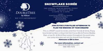 Door prizes throughout the event plus one lucky attendee will win the Grand Prize of a Bridal Shower at the DoubleTree by Hilton Bay City!
