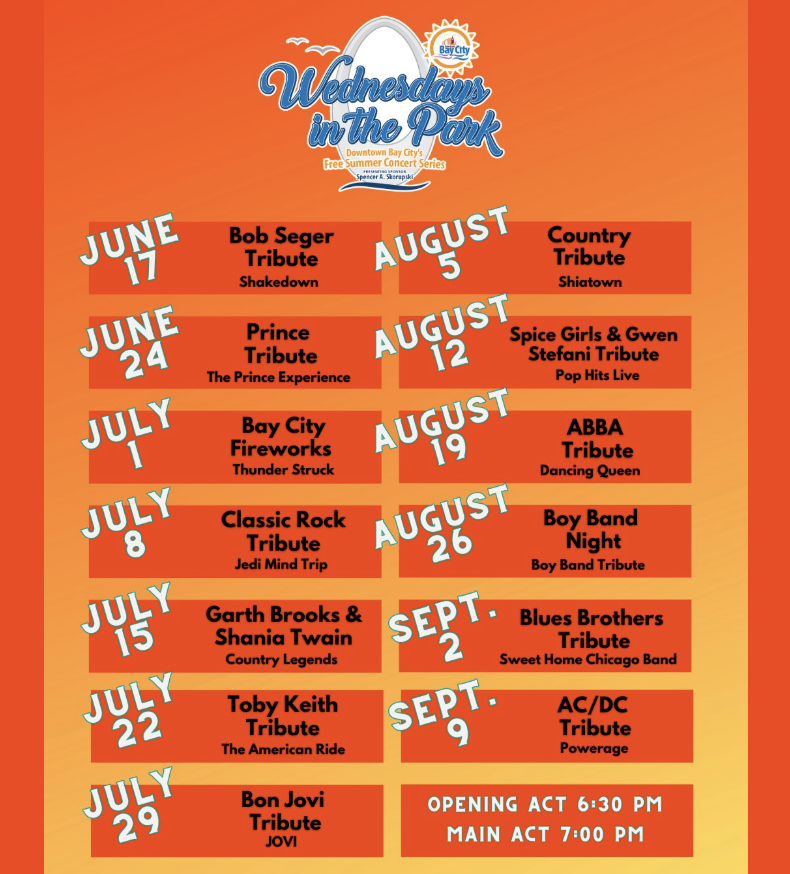 Bring the family to enjoy "Wednesdays in the Park", part of the Downtown Bay City Free Summer Concert Series. Opening act - 6:30pm. Headliner - 7:00pm